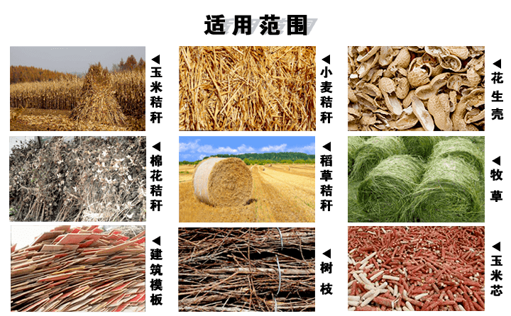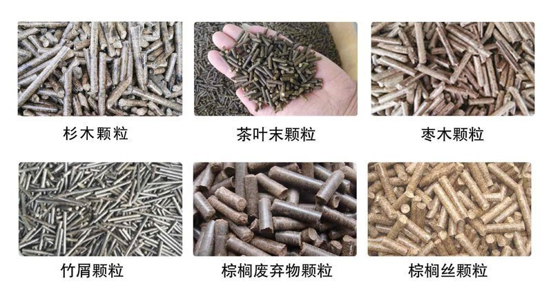 生物質顆粒機可以將原木、木屑、刨花,玉米小麥秸稈、稻草,建筑模板、木工邊角料,果殼、果渣、棕櫚以及污泥木屑等,通過預處理和加工,將